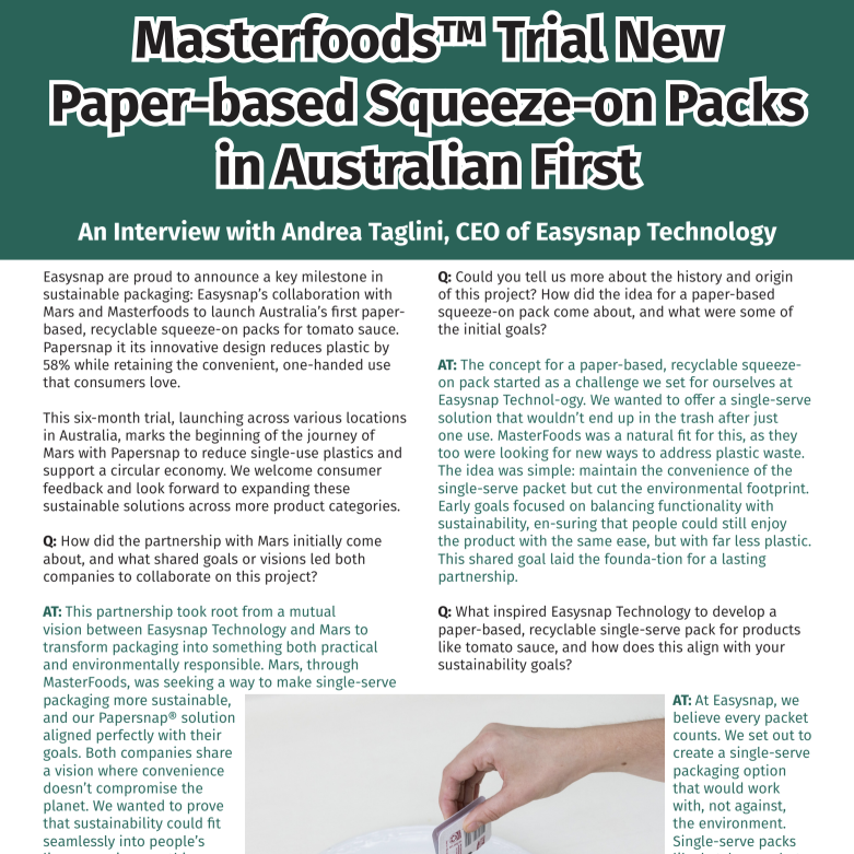 Easysnap Technology partners with Masterfoods™ to launch new paper-based packs in Australia